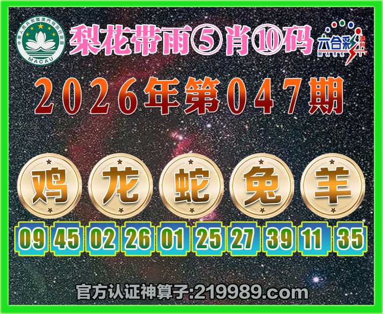 047期:【梨花带雨】 🏇⑤肖⑩码🏇【鸡龙蛇羊】开:兔39