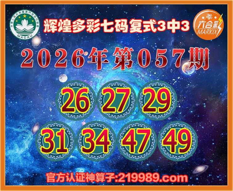 057期:《辉煌多彩》 👑七码复式3中3👑
